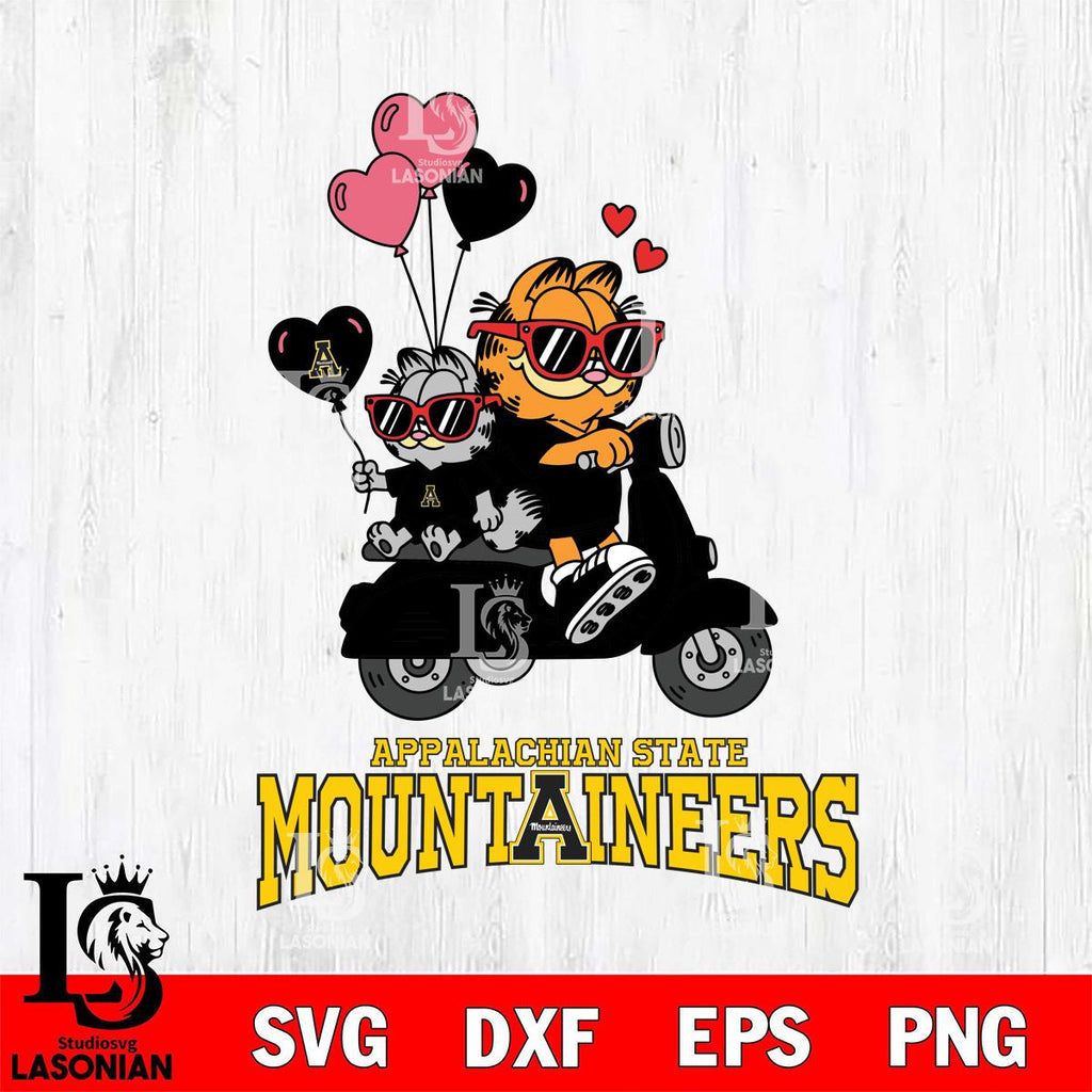 Appalachian State Mountaineers Garfield and Nermal Valentine File Cut, NCAA SVG DXF EPS PNG PDF File, Digital Download , Criucut , Silhouette