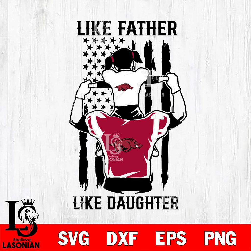 Plus, you can print these designs on a wide range of surfaces such as mugs, t-shirts, tumblers, flags, and more. Unleash your creativity and personalize your world with Arkansas Razorbacks Like Father Like Daughter
