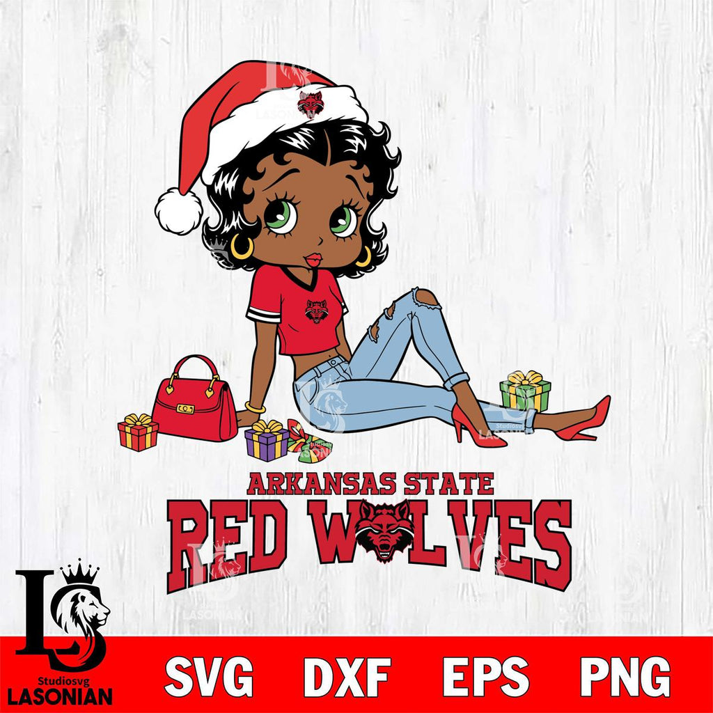 Arkansas State Red Wolves Betty Boop Christmas Packing File Cut, NCAA SVG DXF EPS PNG PDF File, Digital Download , Criucut , Silhouette