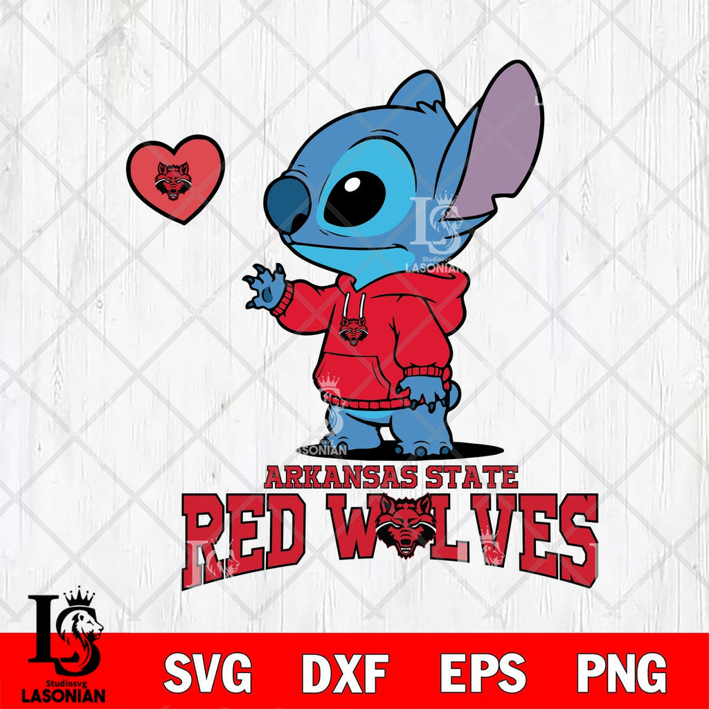 Plus, you can print these designs on a wide range of surfaces such as mugs, t-shirts, tumblers, flags, and more. Unleash your creativity and personalize your world with Arkansas State Red Wolves Stitch valentine heart File cut , Football Criucut , Digital Download, NCAA SVG DXF EPS PNG PDF File, Instant Download