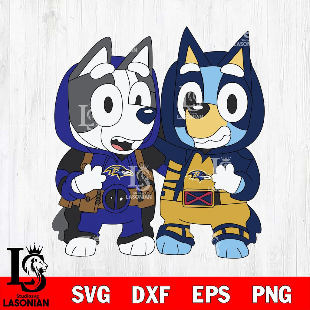 Baltimore Ravens Bluey Deadpool Wolverine is a digital download, no physical product will be shipped. Once you've downloaded the file, you can embark on a variety of personal projects.