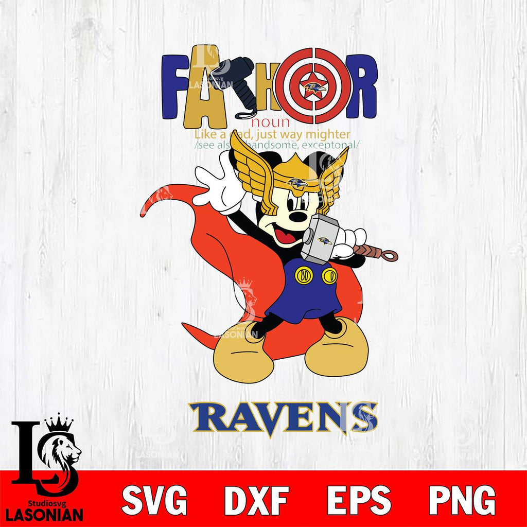 Plus, you can print these designs on a wide range of surfaces such as mugs, t-shirts, tumblers, flags, and more. Unleash your creativity and personalize your world with Baltimore Ravens Mickey Father Sport
