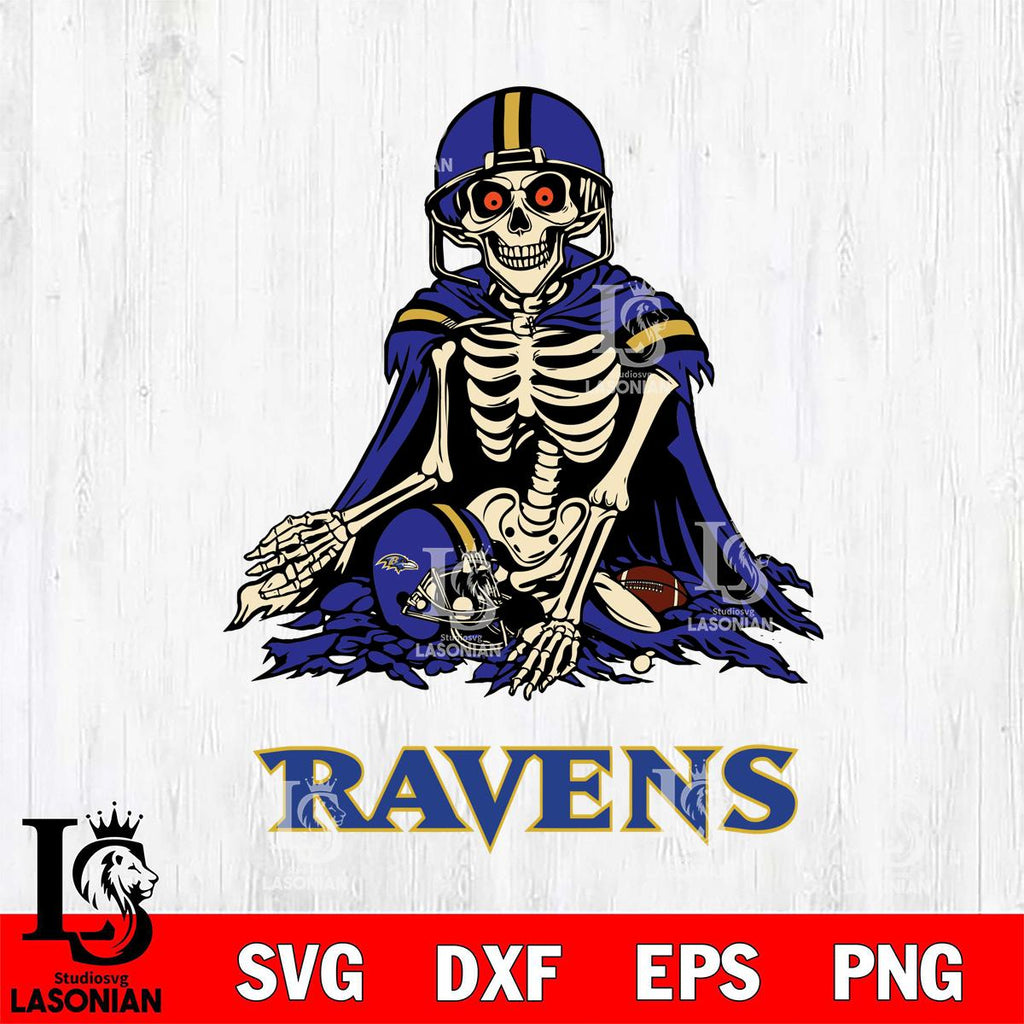 Plus, you can print these designs on a wide range of surfaces such as mugs, t-shirts, tumblers, flags, and more. Unleash your creativity and personalize your world with Baltimore Ravens Skeleton Football 3