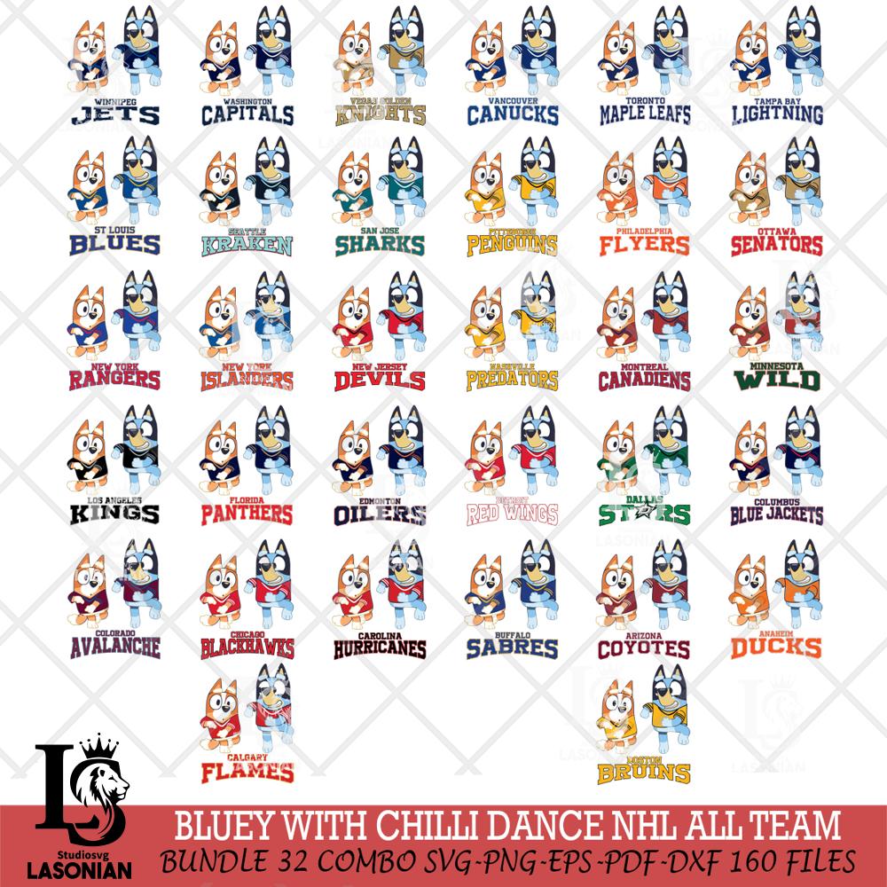 Bluey with Chilli Dance NHL ALL TEAM is a digital download, no physical product will be shipped. Once you've downloaded the file, you can embark on a variety of personal projects.