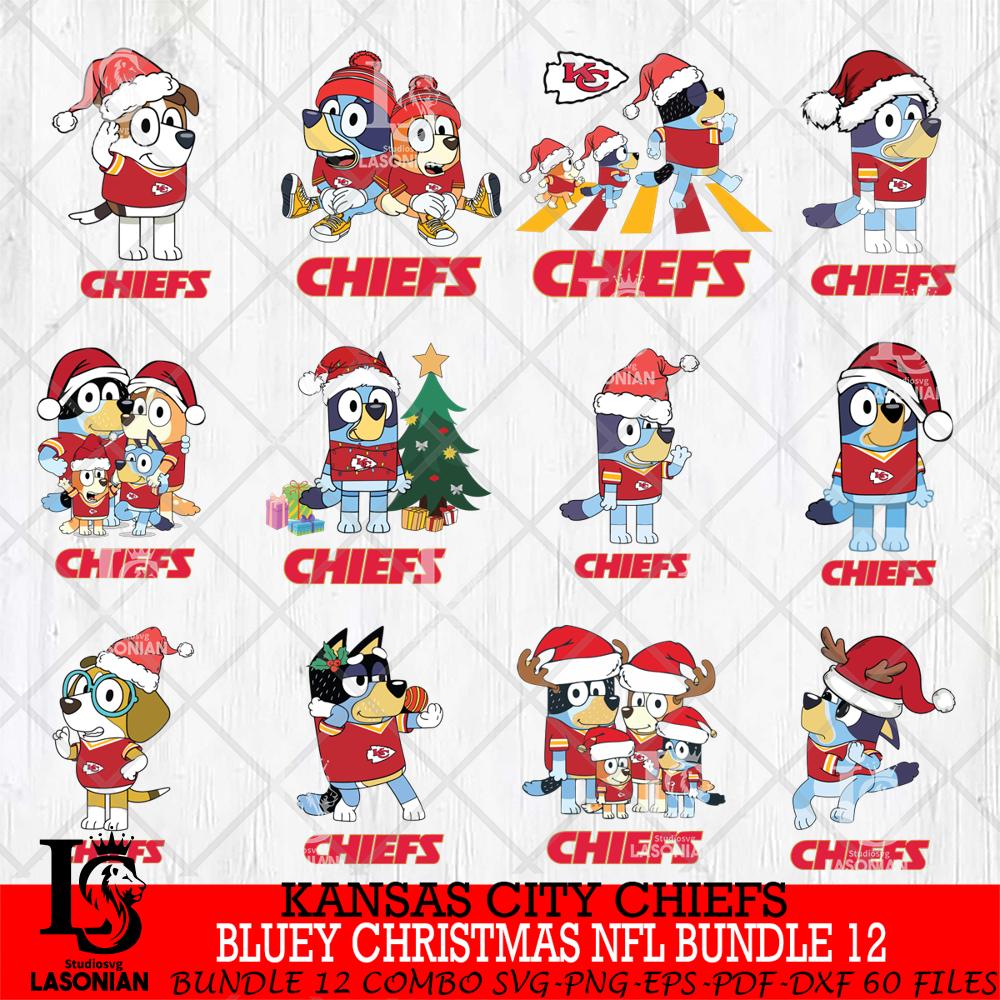 ►With the Kansas City Chiefs Bluey Christmas NFL Bundle 12, you can let your creativity run wild. This INSTANT DOWNLOAD package includes a ZIP folder containing the following:
