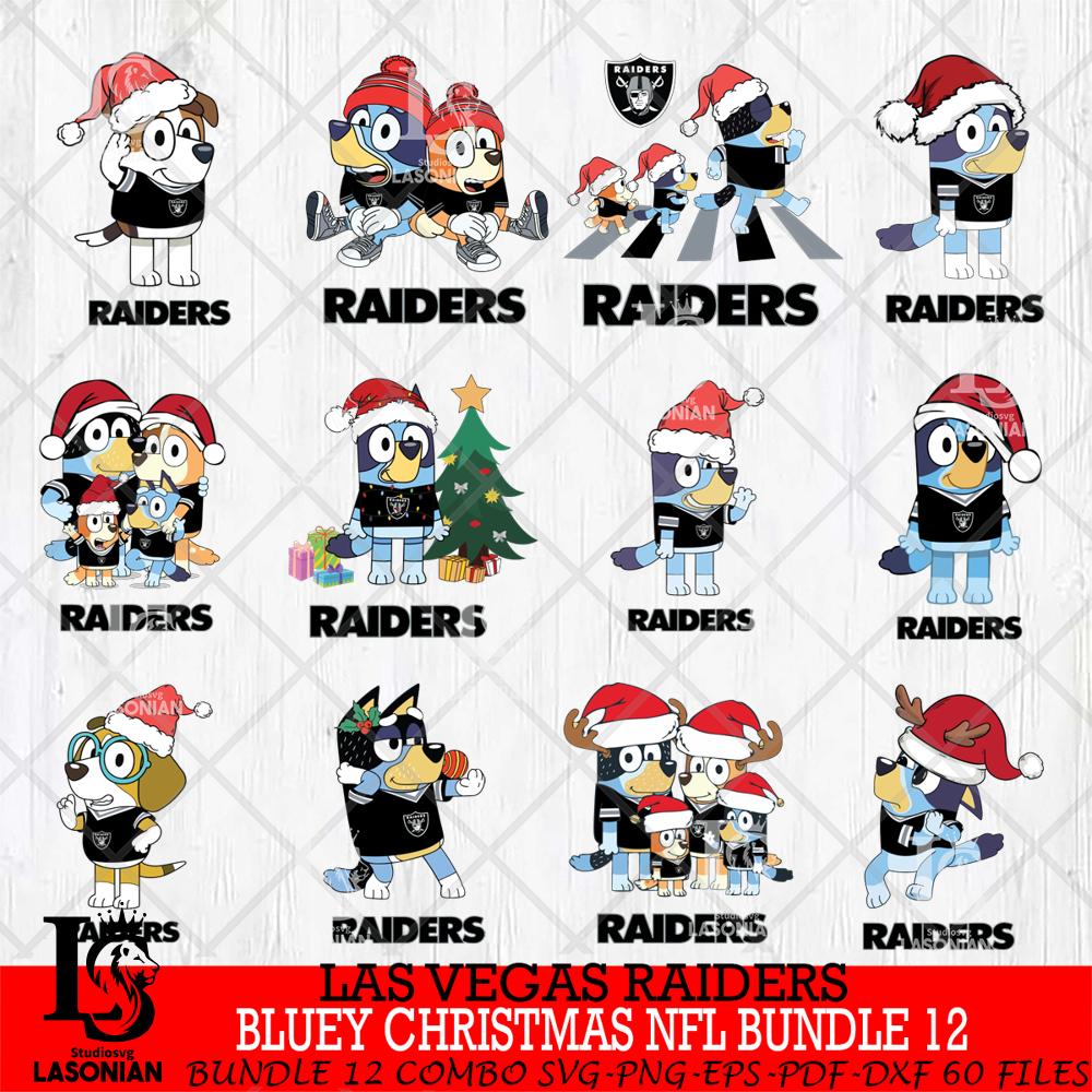 Las Vegas Raiders Bluey Christmas NFL Bundle 12 Svg Eps Dxf Png File,Cut Svg Files, Digital File, Sublimation