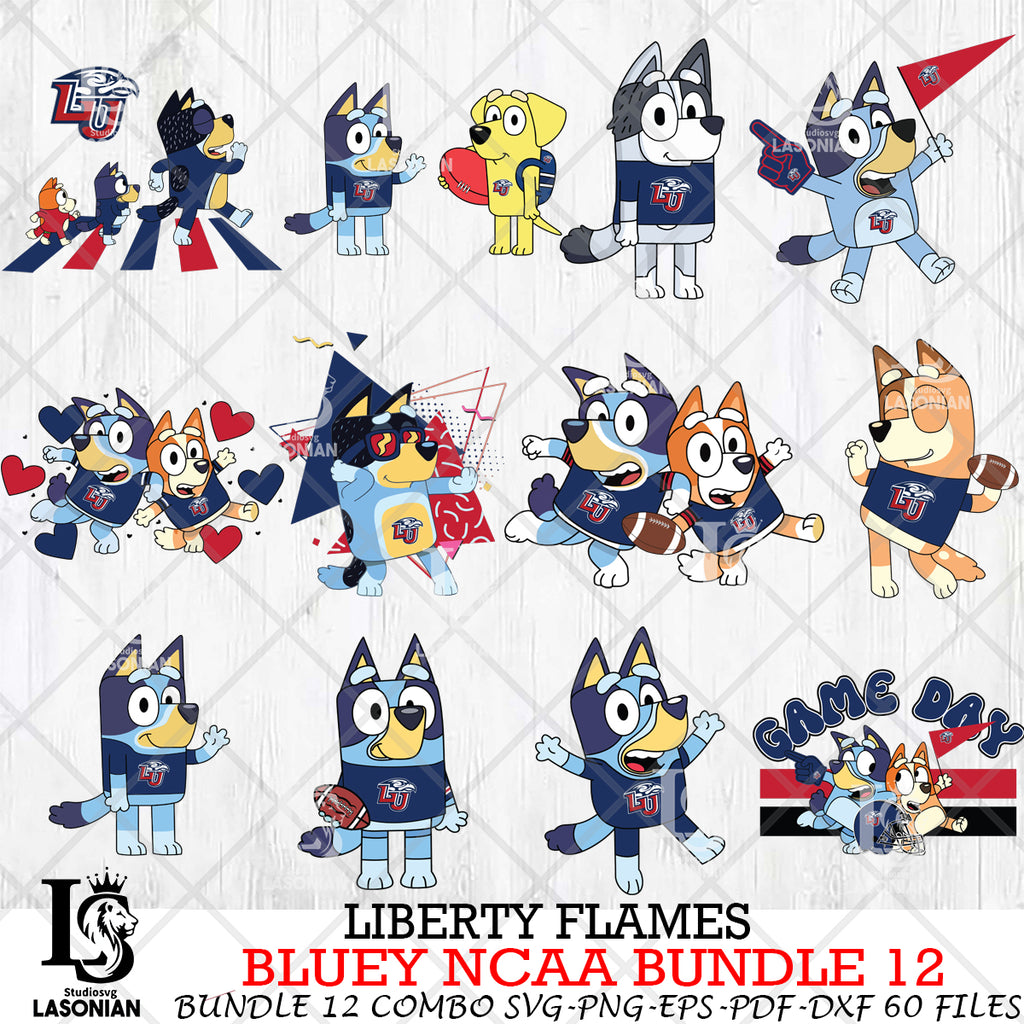 ►With the Liberty Flames Bluey NCAA Bundle 12, you can let your creativity run wild. This INSTANT DOWNLOAD package includes a ZIP folder containing the following: