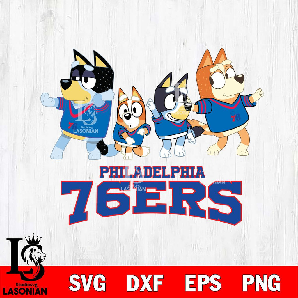 Plus, you can print these designs on a wide range of surfaces such as mugs, t-shirts, tumblers, flags, and more. Unleash your creativity and personalize your world with Philadelphia 76ers Bluey Mode Dance Squats