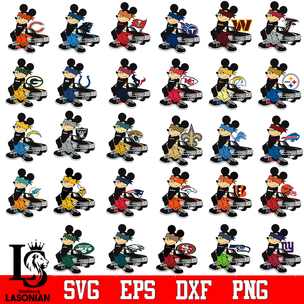 Bundle Gangster Mickey Mouse NFL,Bundle NFL, Gangster Mickey Mouse NFL svg eps dxf png file