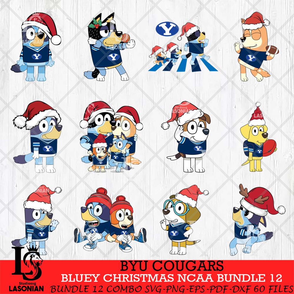 BYU Cougars Bluey Christmas NCAA Bundle 12 SVG Eps Dxf Png File, Digital Download, Instant Download
