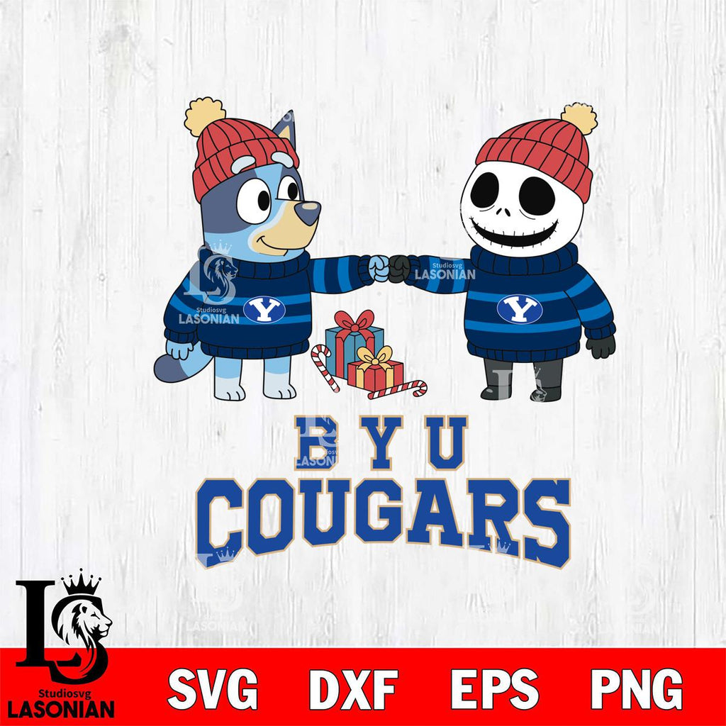 BYU Cougars Bluey With Jack Skellington Christmas File Cut, NCAA SVG DXF EPS PNG FILE, Digital Download,Instant Download, Silhouette