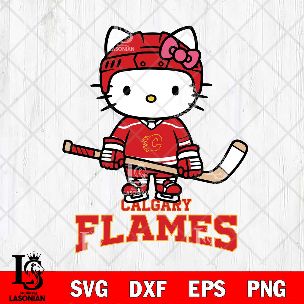 Calgary Flames Hello Kitty Action Figure File cut ,NHL Criucut , Digital Download, Hello Kitty SVG DXF EPS PNG PDF File, Art
