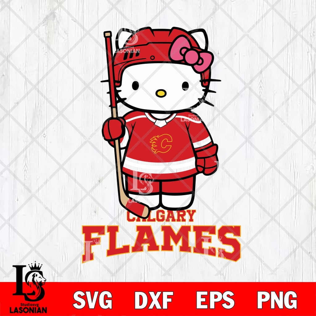 Calgary Flames Hello Kitty Hockey Salute File cut ,NHL Criucut , Digital Download, Hello Kitty SVG DXF EPS PNG PDF File, Art