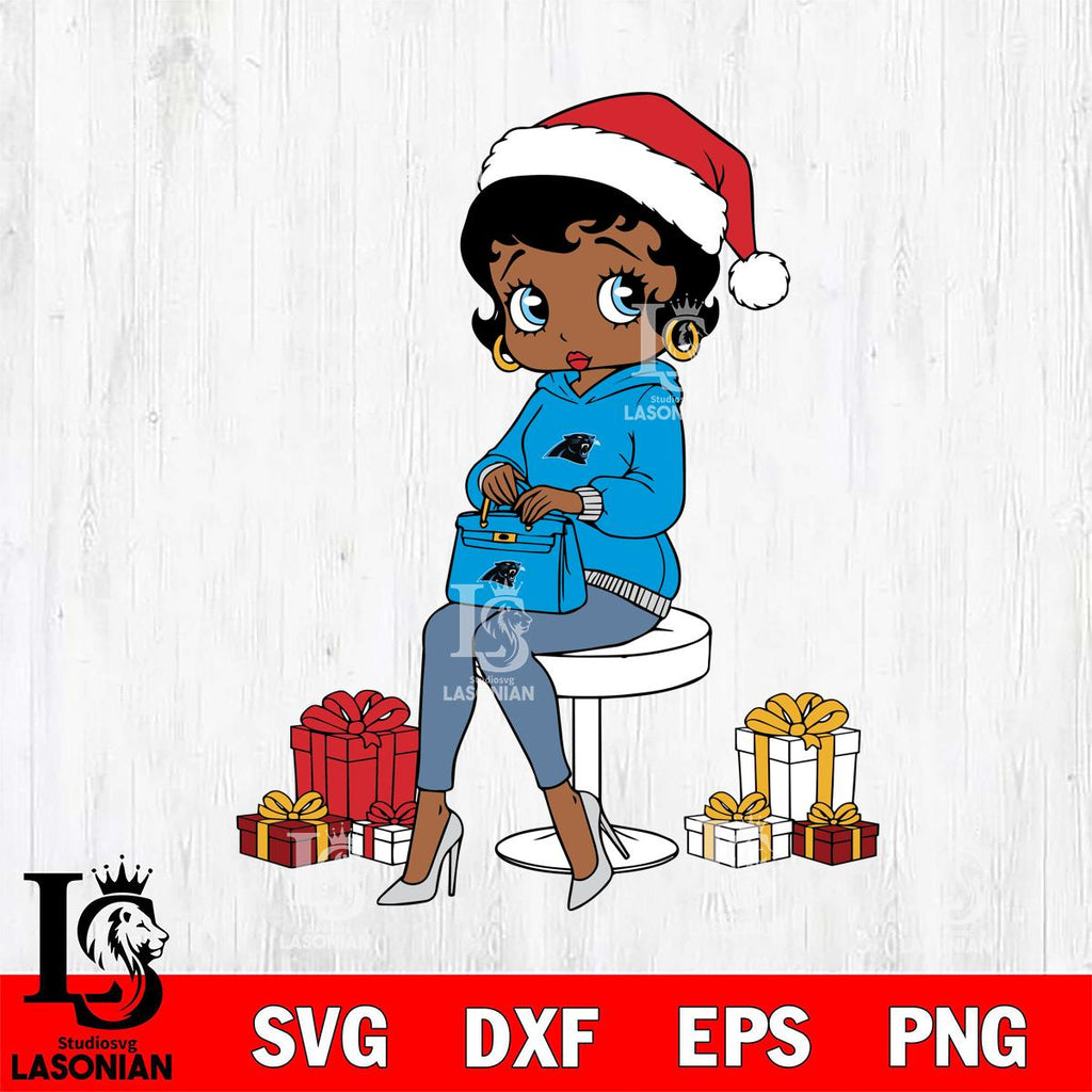Carolina Panthers Betty Boop Sit Christmas File Cut, NFL SVG DXF EPS PNG PDF File, Digital Download , Criucut , Silhouette