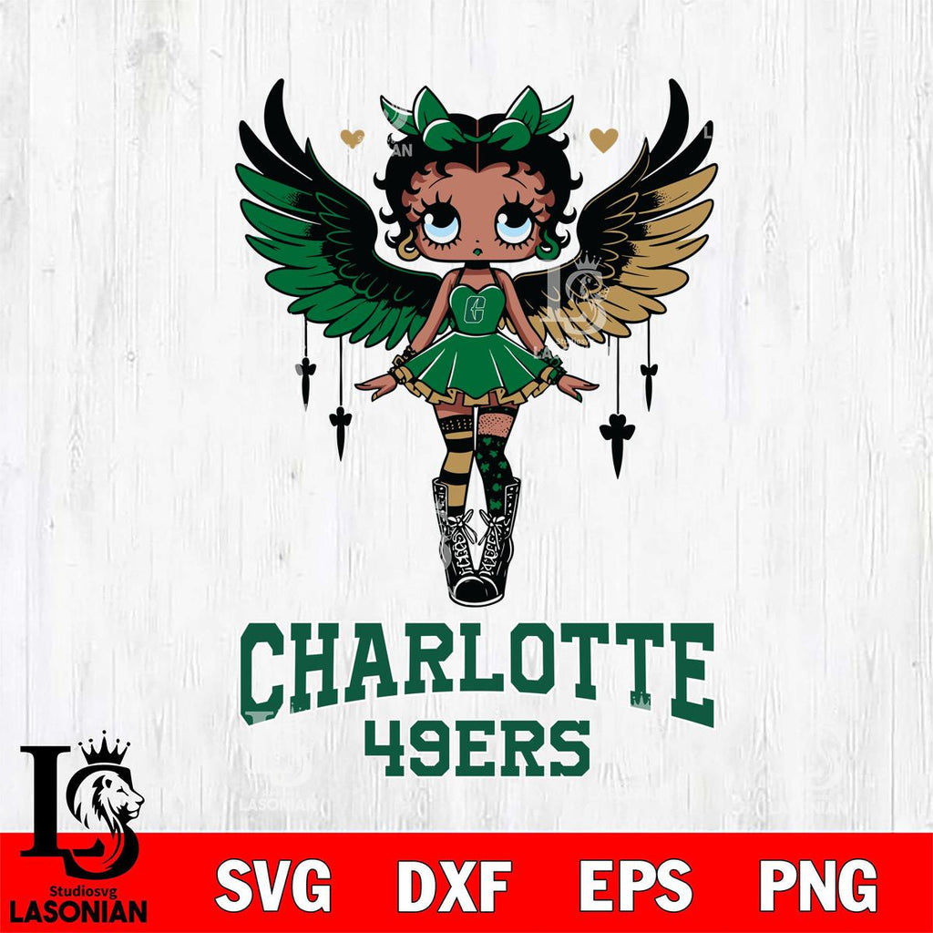 Plus, you can print these designs on a wide range of surfaces such as mugs, t-shirts, tumblers, flags, and more. Unleash your creativity and personalize your world with Charlotte 49ers Anglel Black Fan Girl Betty Boop