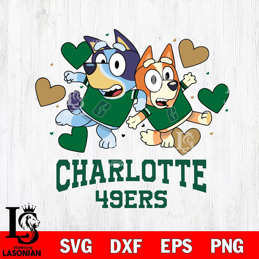 Plus, you can print these designs on a wide range of surfaces such as mugs, t-shirts, tumblers, flags, and more. Unleash your creativity and personalize your world with Charlotte 49ers Bluey & Bingo 10