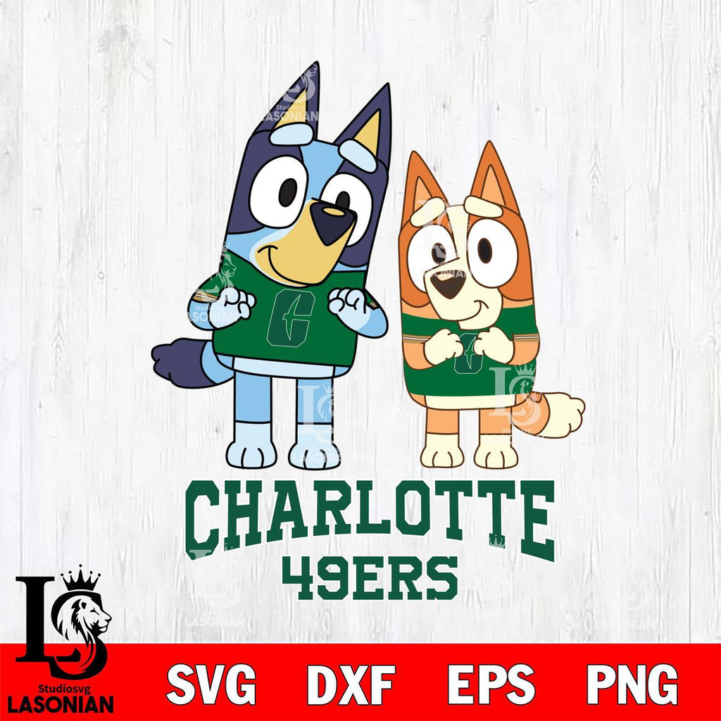 Plus, you can print these designs on a wide range of surfaces such as mugs, t-shirts, tumblers, flags, and more. Unleash your creativity and personalize your world with Charlotte 49ers Bluey & Bingo 6