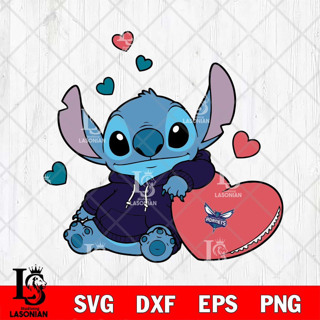 Buy now Charlotte Hornets Stitch Hugging Big Heart File cut , Criucut , Digital Download, NBA SVG DXF EPS PNG PDF File