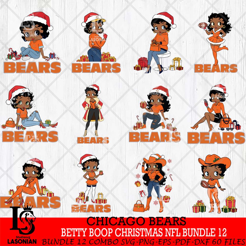 Chicago Bears Betty Boop Christmas NFL Bundle File Cut, NFL SVG DXF EPS PNG PDF File, Digital Download , Criucut , Silhouette