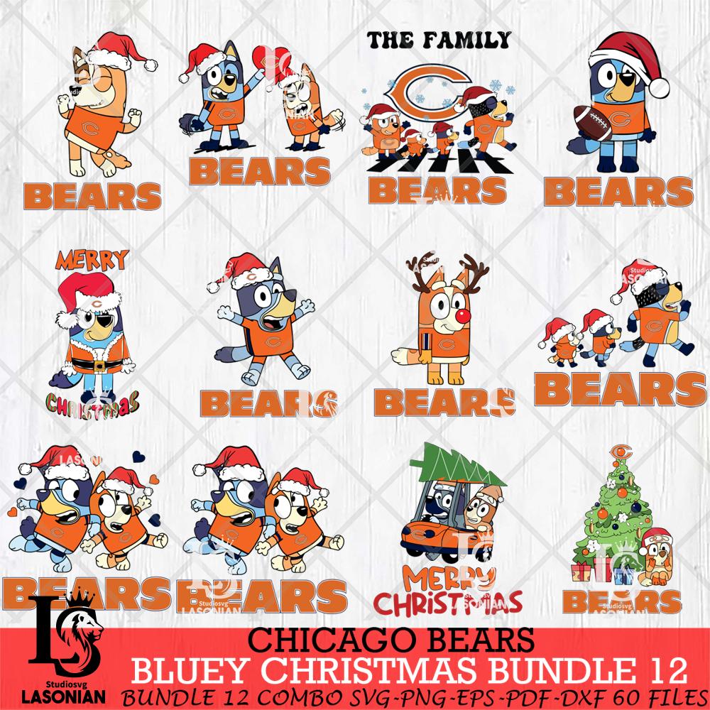 Chicago Bears Bluey Christmas Holiday Bundle 12 Svg Eps Dxf Png File, Digital Download