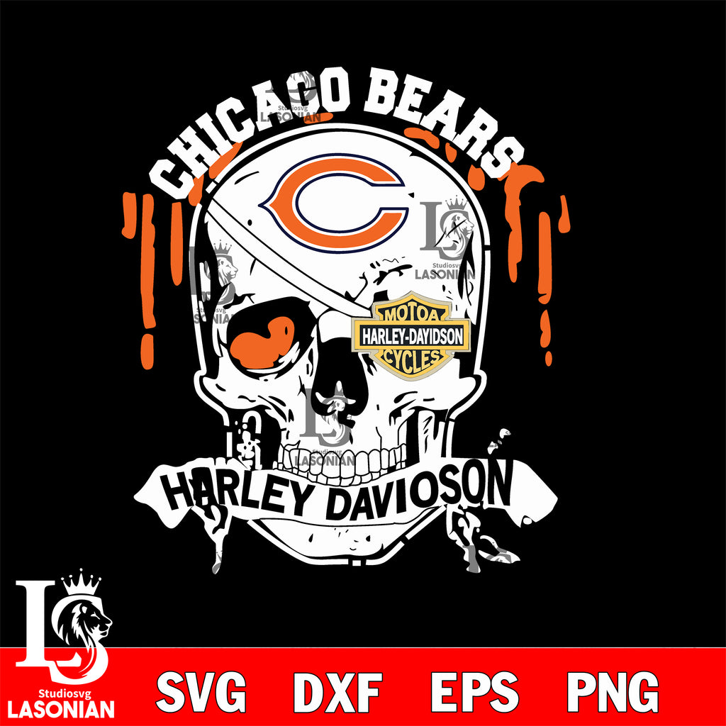 Skull Chicago Bears Harley davidson svg eps dxf png file, digital download , Instant Download