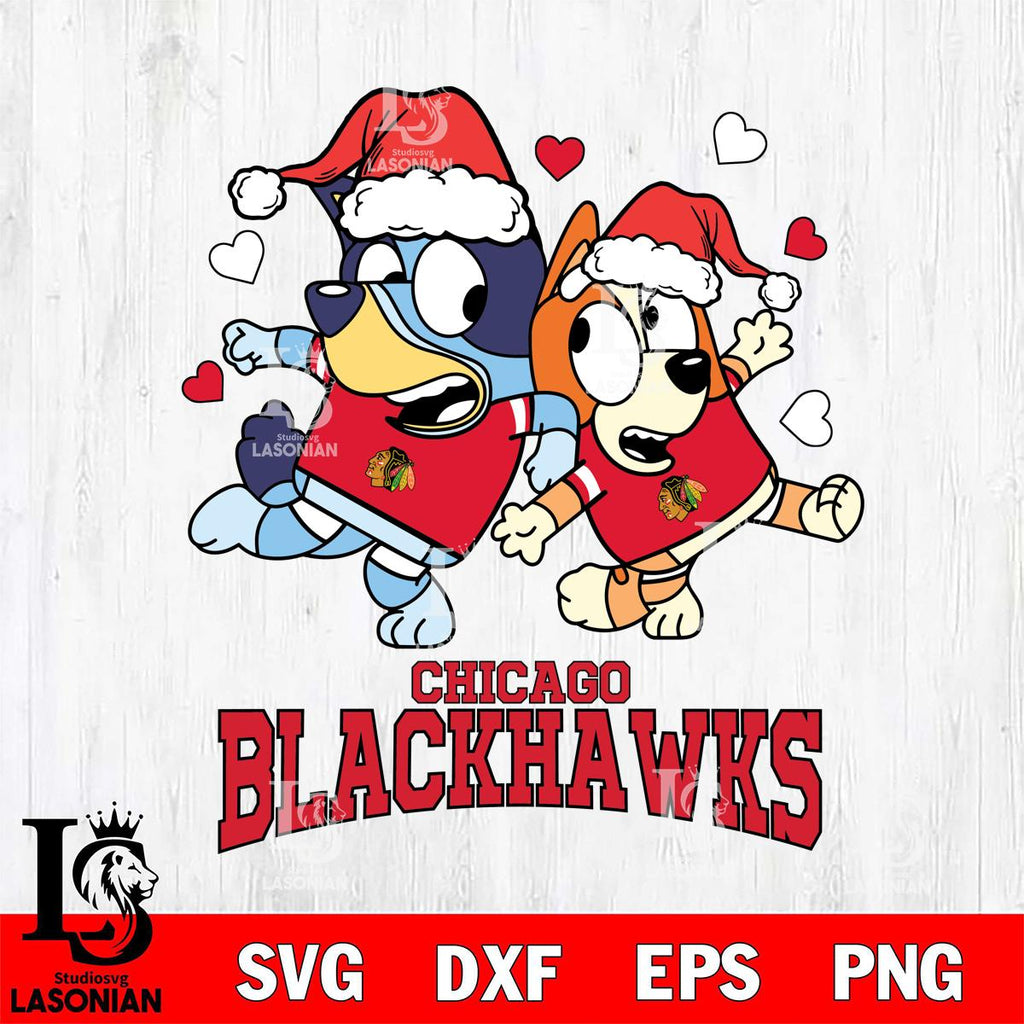 Chicago Blackhawks Bluey Christmas NFL Svg Eps Dxf Png File, Digital Download