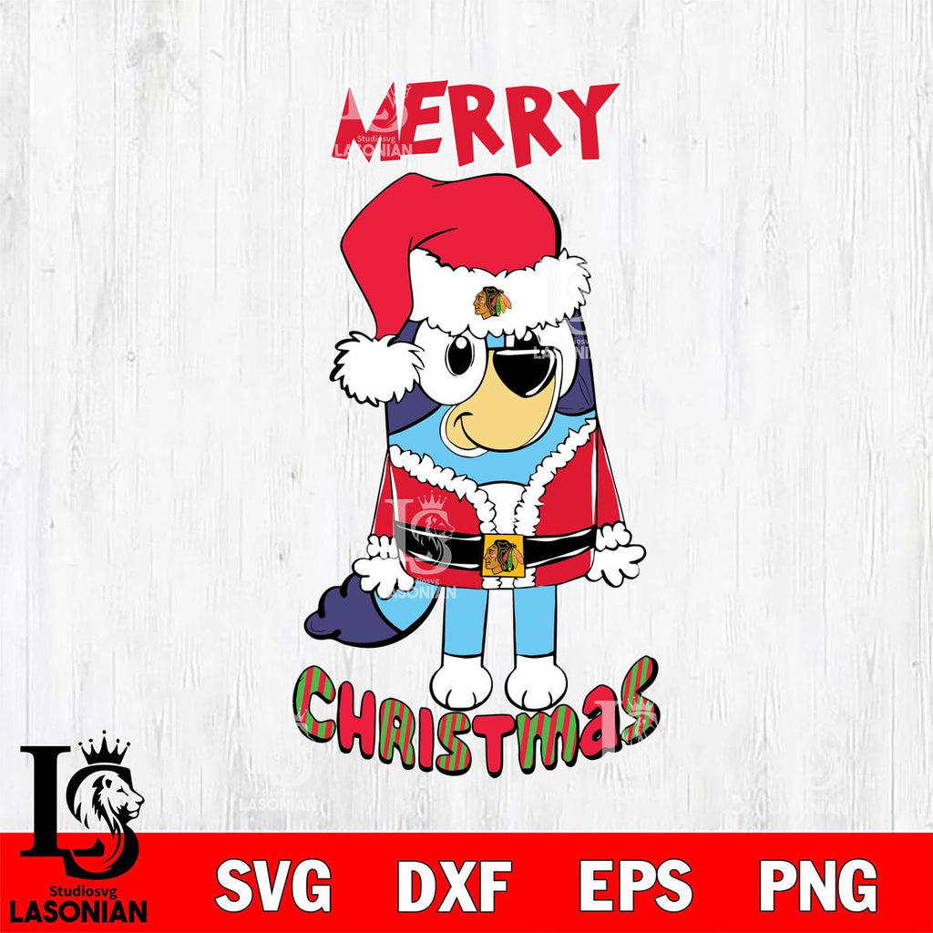 Chicago Blackhawks Bluey Merry Christmas Bluey Santa Claus Svg Eps Dxf Png File, Digital Download