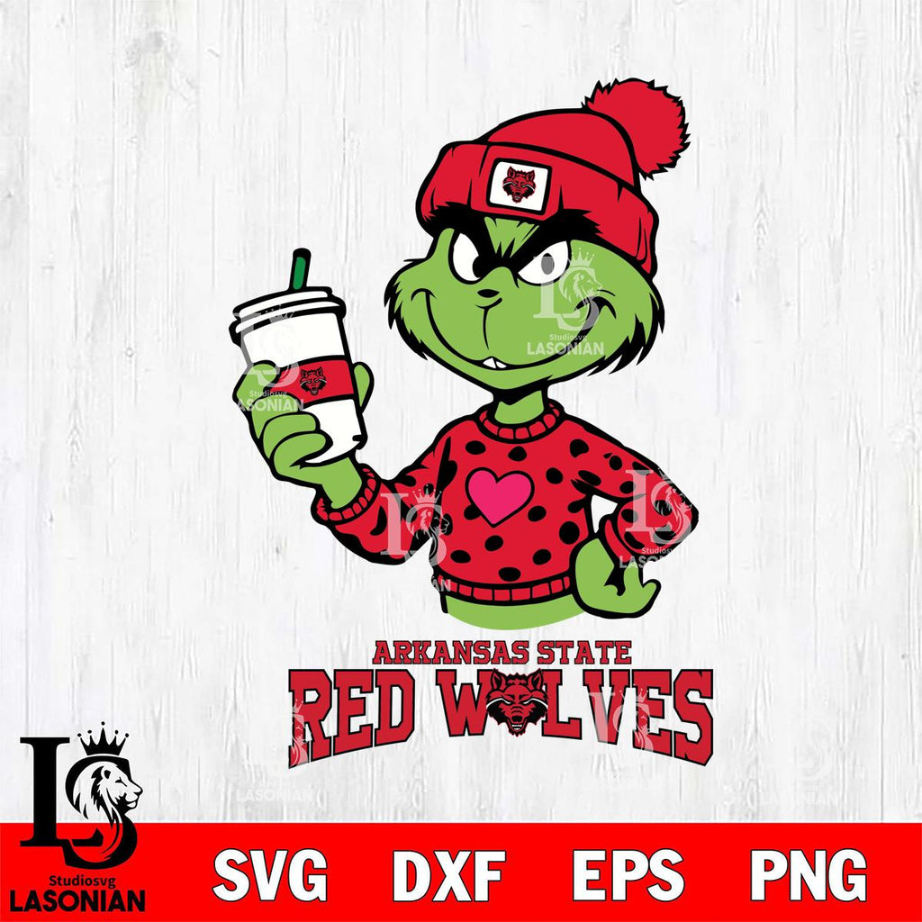 Arkansas State Red Wolves Boujee Grinch Heart Christmas Cut Files Cricut, Svg Dxf Eps Png file, Digital download , Silhouette