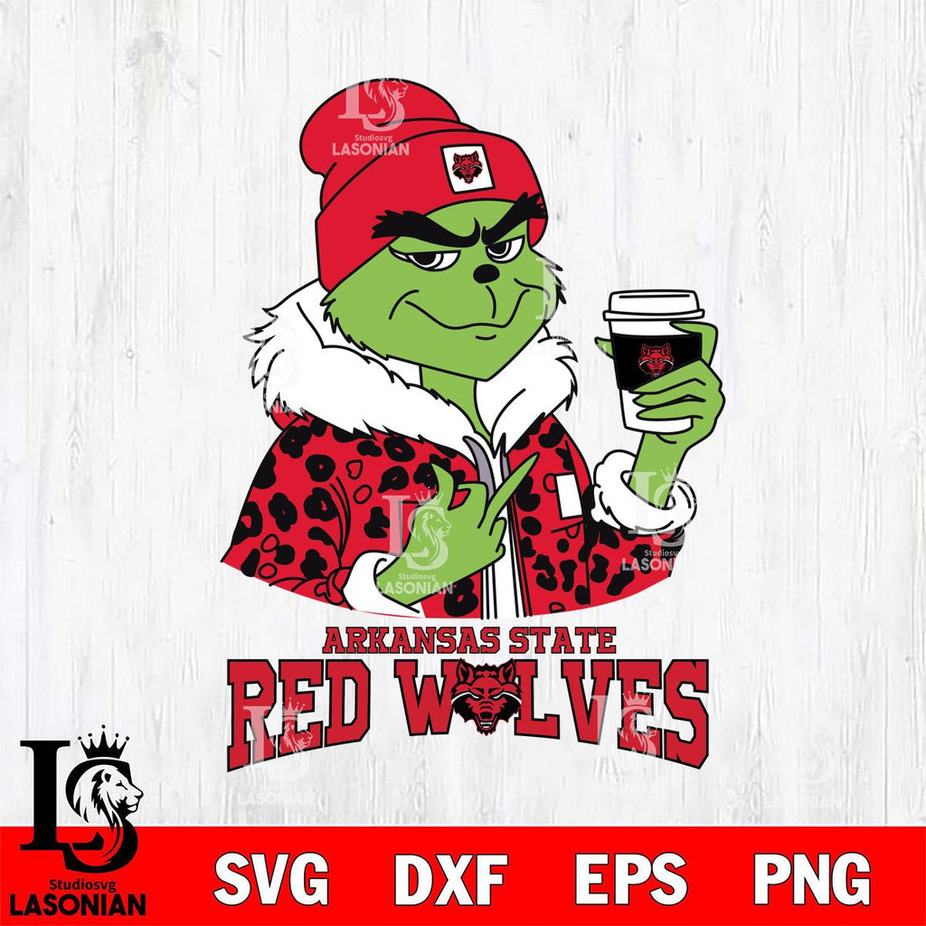Arkansas State Red Wolves Boujee Grinch Leopard Christmas Cut Files Cricut, Svg Dxf Eps Png file, Digital download , Silhouette