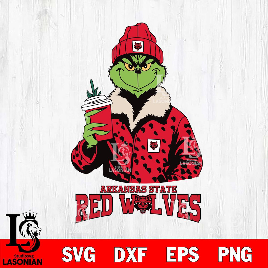 Arkansas State Red Wolves Grinch Christmas Cut Files Cricut, Svg Dxf Eps Png file, Digital download , Silhouette