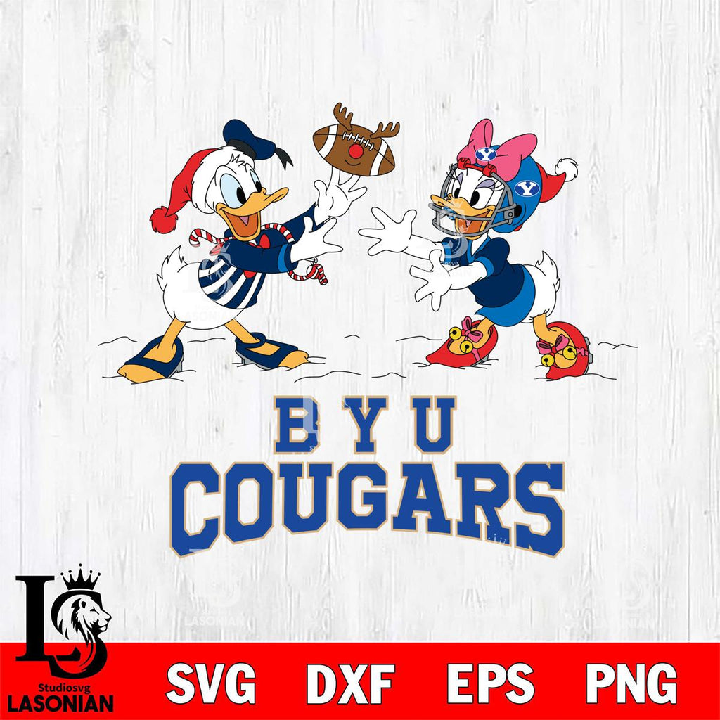 Plus, you can print these designs on a wide range of surfaces such as mugs, t-shirts, tumblers, flags, and more. Unleash your creativity and personalize your world with BYU Cougars Donald Duck & Daisy Duck Football