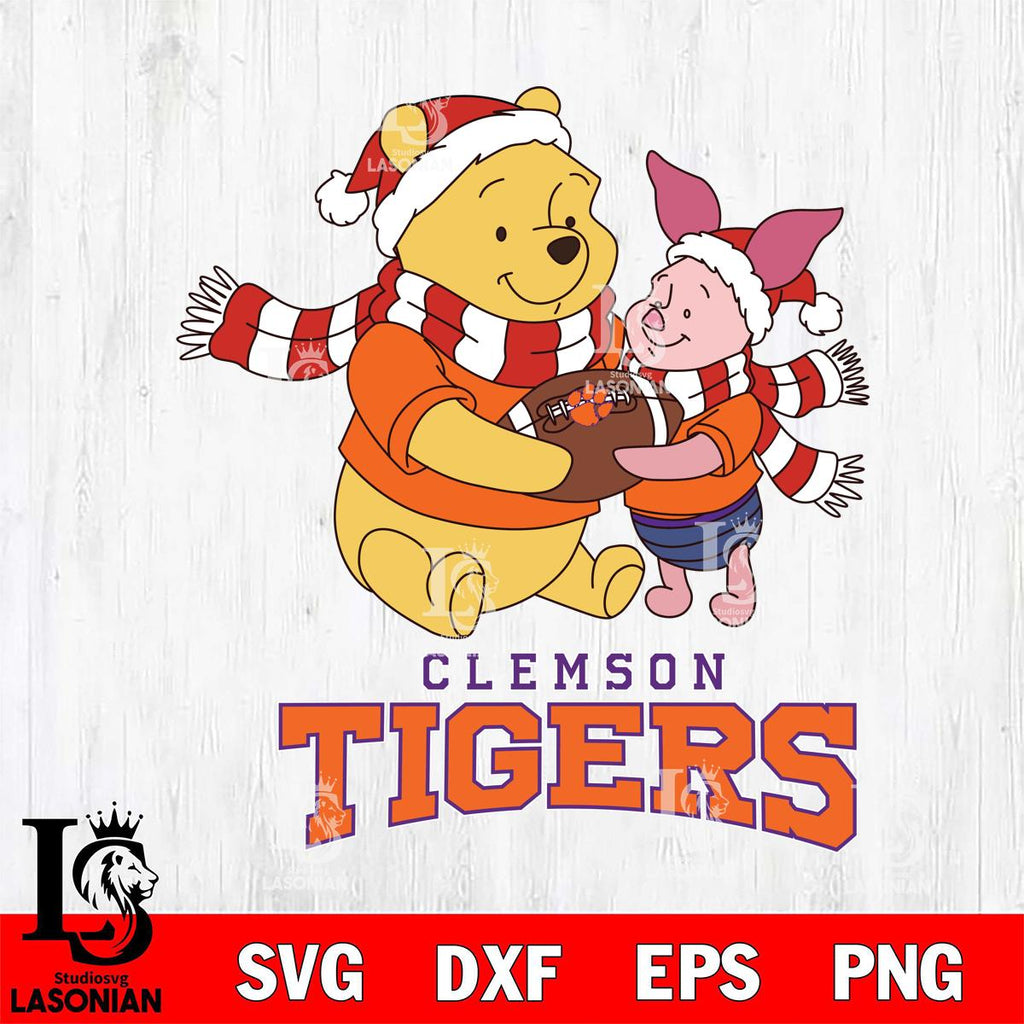 Clemson Tigers Winnie the Pooh & Piglet Football Cricut,Christmas SVG DXF EPS PNG FILE, NCAA Digital Download,Instant Download, Silhouette