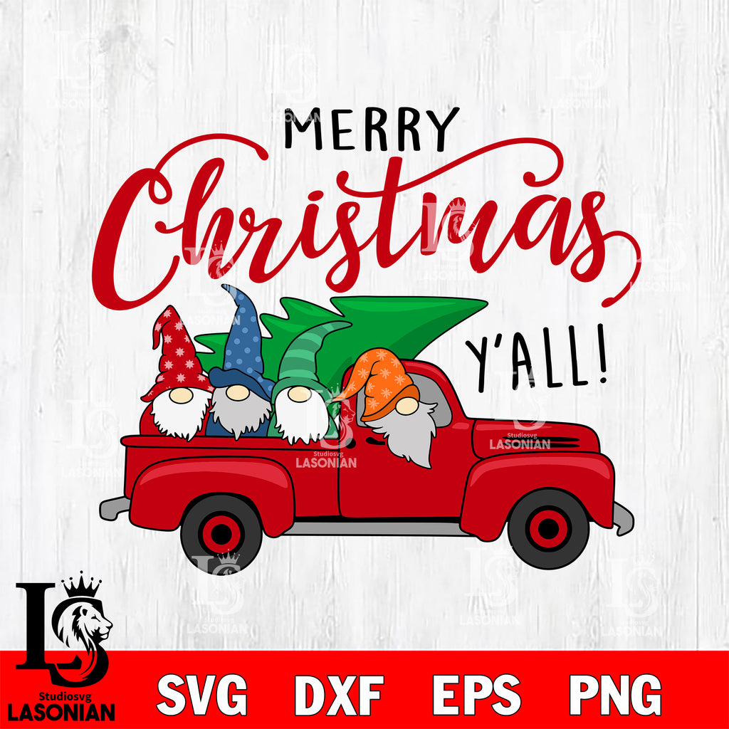 Merry christmas y'all jeep Gnome svg eps dxf png file, digital download