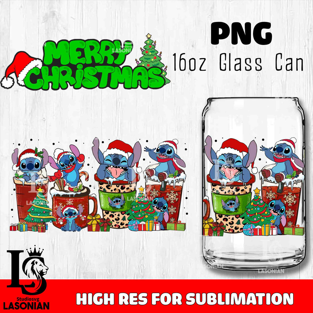 stitch christmas PNG, stitch Glass Cup Wrap , Libbey Can Glass Cup 5 PNG file, digital download