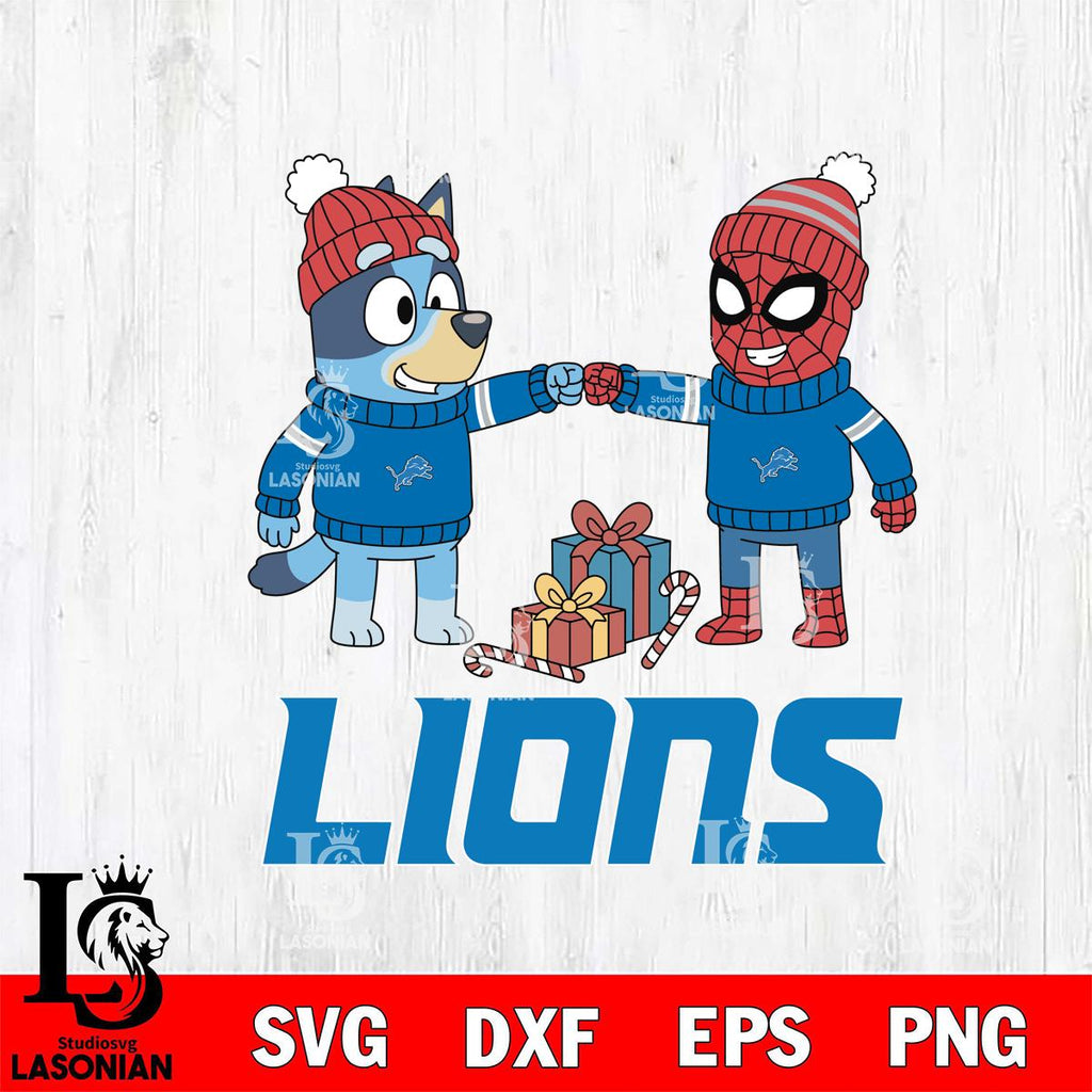 Detroit Lions Bluey With Spider man Christmas Cricut,Christmas SVG DXF EPS PNG FILE, Digital Download,Instant Download, Silhouette