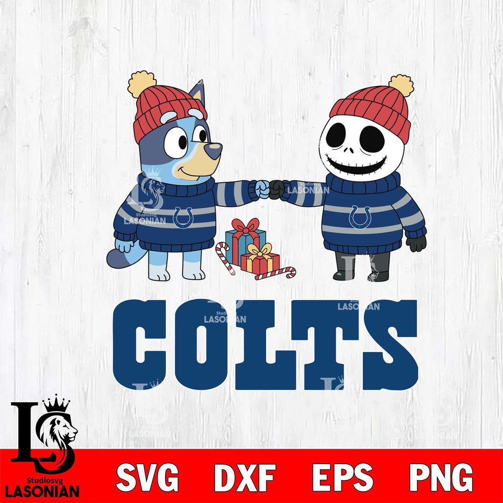 Indianapolis Colts Bluey With Jack Skellington Christmas Cricut,Christmas SVG DXF EPS PNG FILE, Digital Download,Instant Download, Silhouette