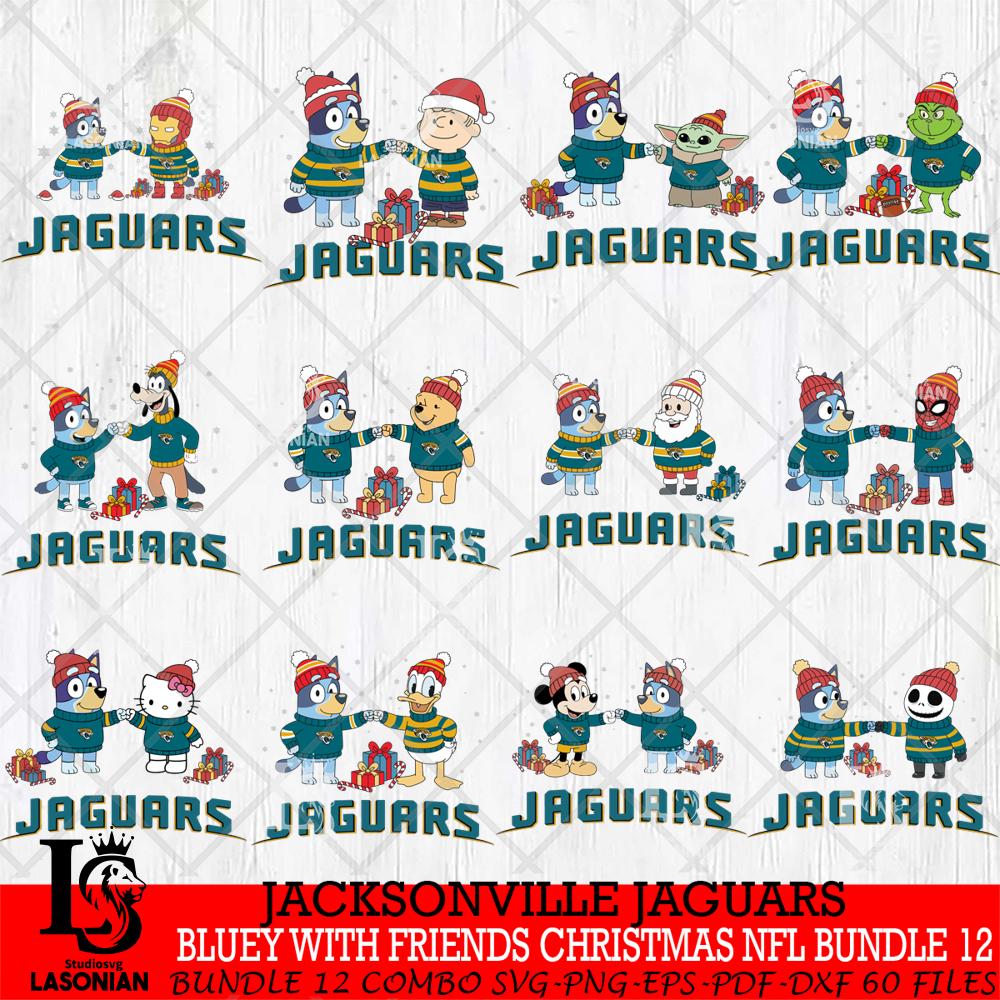 Jacksonville Jaguars Bluey With friends christmas NFL Bundle is a digital download, no physical product will be shipped. Once you've downloaded the file, you can embark on a variety of personal projects.