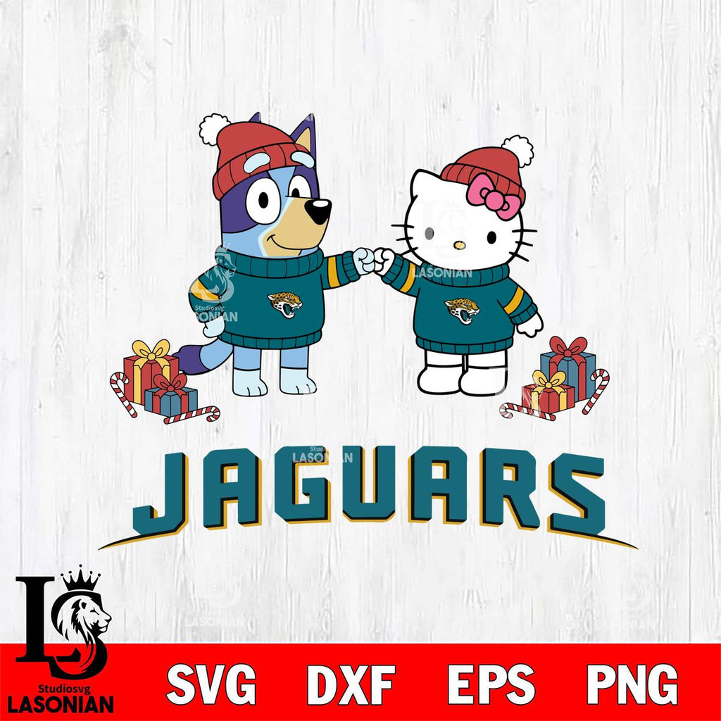 Jacksonville Jaguars Bluey With Hello kitty Christmas is a digital download, no physical product will be shipped. Once you've downloaded the file, you can embark on a variety of personal projects.
