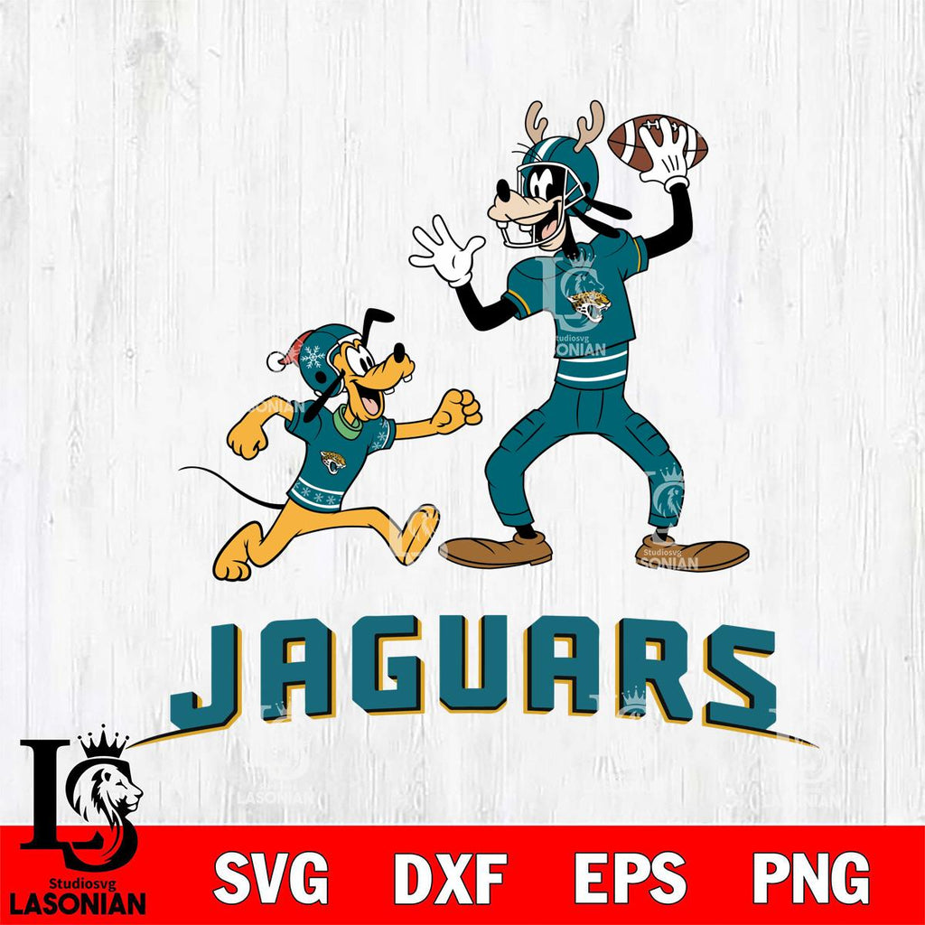 Plus, you can print these designs on a wide range of surfaces such as mugs, t-shirts, tumblers, flags, and more. Unleash your creativity and personalize your world with Jacksonville Jaguars Goofy & Pluto Football
