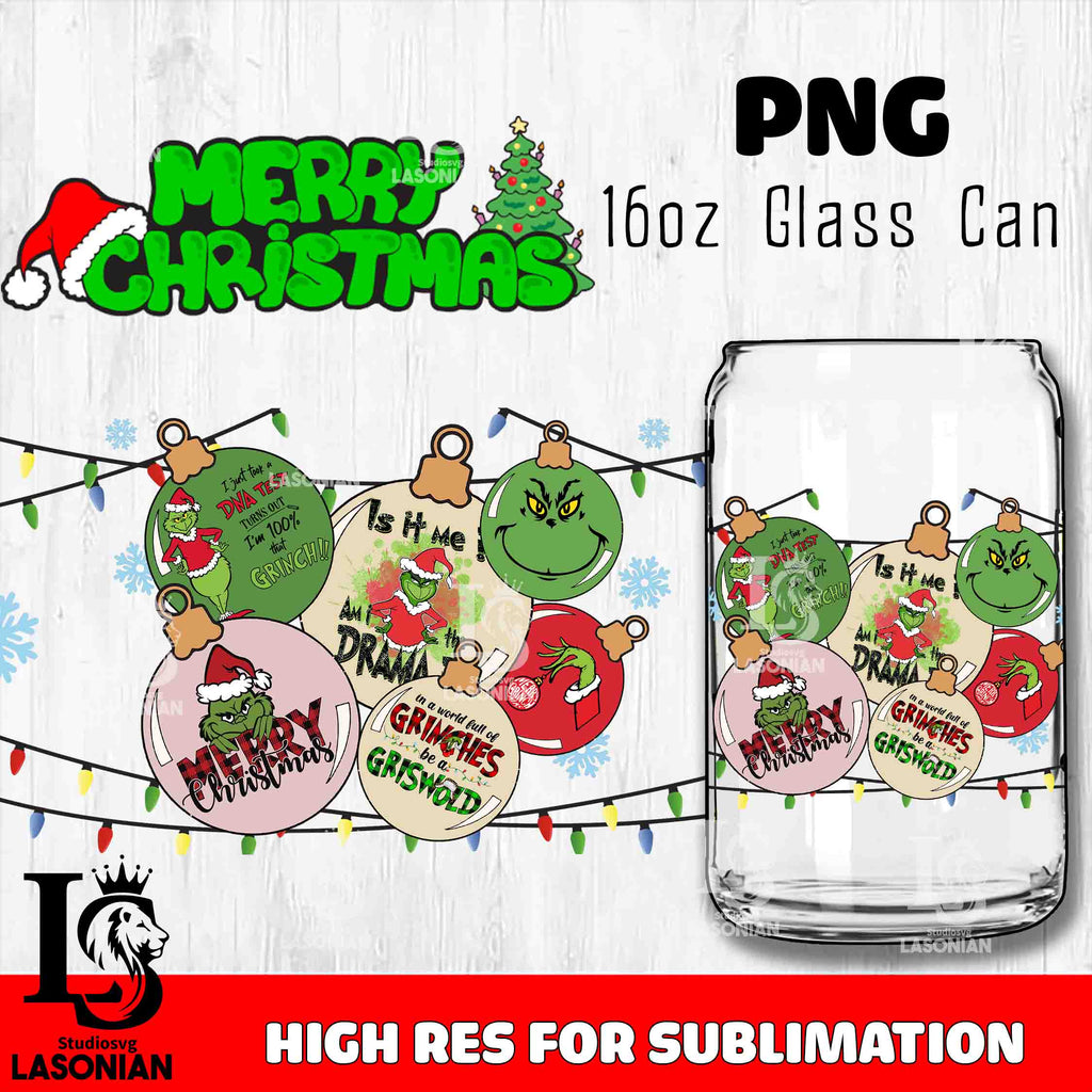 Merry grinch mas PNG, Grinch Glass Cup Wrap , Libbey Can Glass Cup 11 PNG file, digital download
