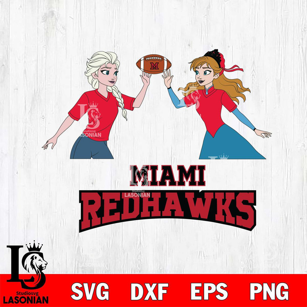 Plus, you can print these designs on a wide range of surfaces such as mugs, t-shirts, tumblers, flags, and more. Unleash your creativity and personalize your world with Miami RedHawks Elsa & Anna Football