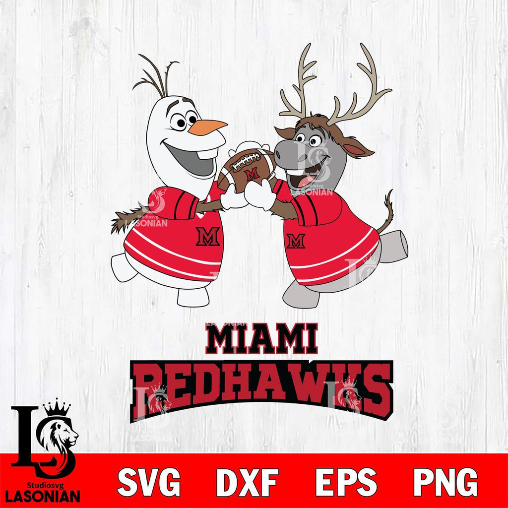 Miami RedHawks Olaf & Sven Football Cricut,Christmas SVG DXF EPS PNG FILE, NCAA Digital Download,Instant Download, Silhouette