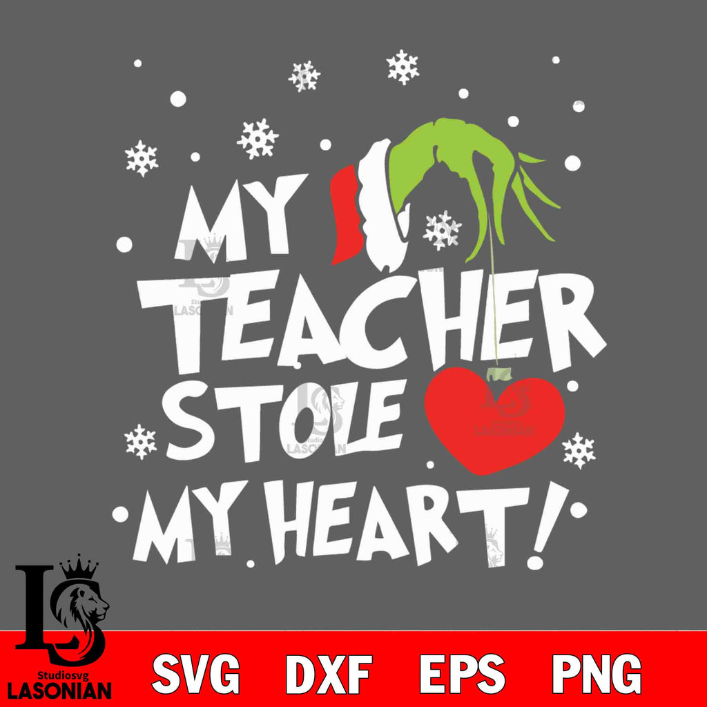 My Teacher stole my heart svg, christmas svg, grinch svg, png, dxf, eps digital file