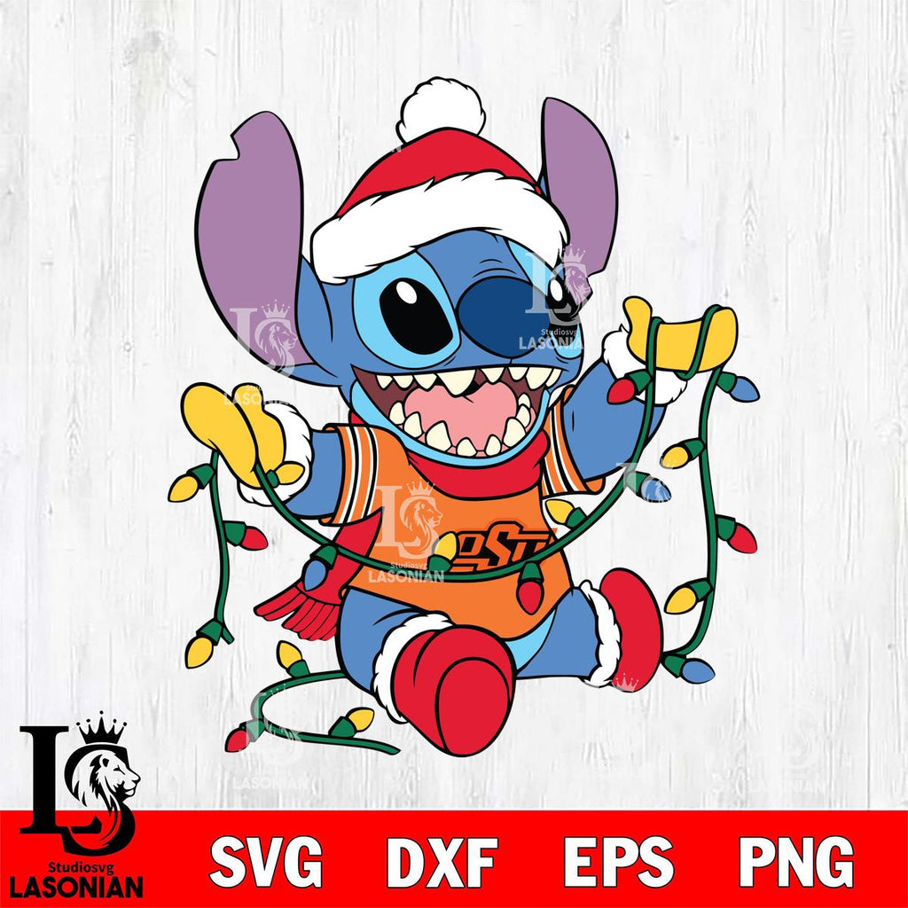 Plus, you can print these designs on a wide range of surfaces such as mugs, t-shirts, tumblers, flags, and more. Unleash your creativity and personalize your world with Oklahoma State Cowboys Stitch Christmas Lights