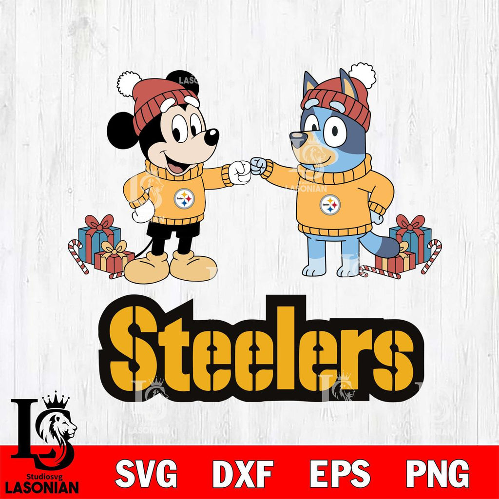 ►With the Pittsburgh Steelers Bluey With Mickey Christmas, you can let your creativity run wild. This INSTANT DOWNLOAD package includes a ZIP folder containing the following: