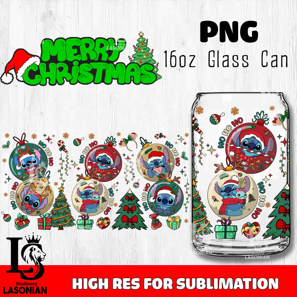 stitch christmas PNG, stitch Glass Cup Wrap , Libbey Can Glass Cup 4 PNG file, digital download
