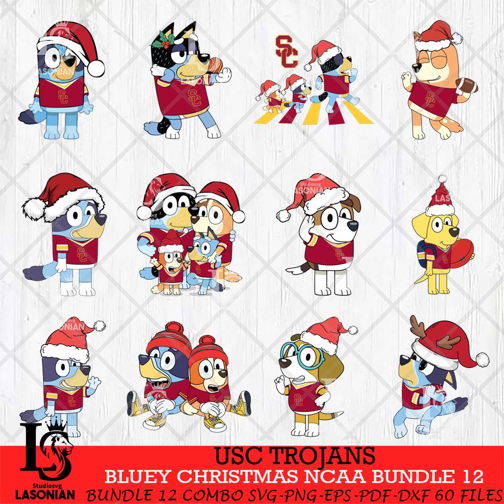 USC Trojans Bluey Christmas NCAA Bundle 12 SVG Eps Dxf Png File, Digital Download, Instant Download