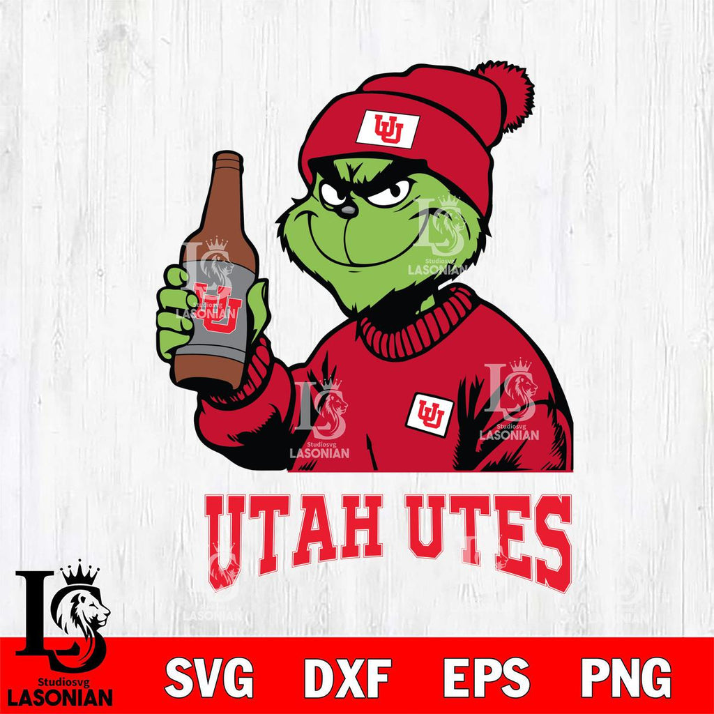 Utah Utes Grinch Drinking Beer Christmas Cut Files Cricut, Svg Dxf Eps Png file, Digital download , Silhouette