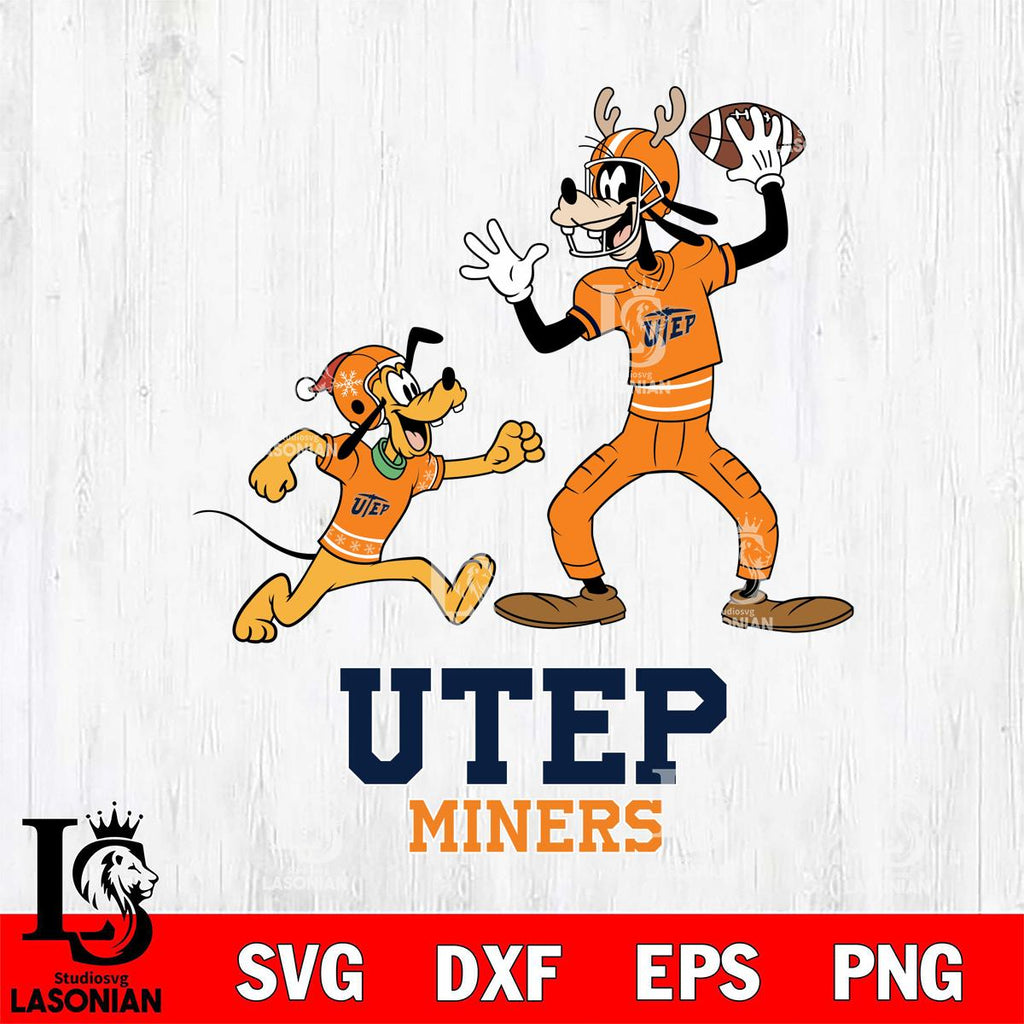 Plus, you can print these designs on a wide range of surfaces such as mugs, t-shirts, tumblers, flags, and more. Unleash your creativity and personalize your world with UTEP Miners Goofy & Pluto Football