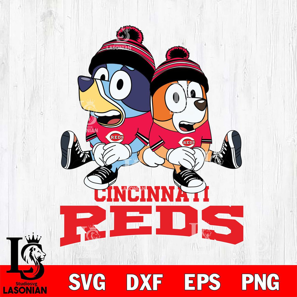 Plus, you can print these designs on a wide range of surfaces such as mugs, t-shirts, tumblers, flags, and more. Unleash your creativity and personalize your world with Cincinnati Reds Bluey & Bingo 8